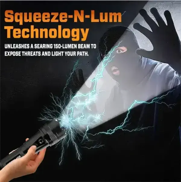 The built-in tactical flashlight unleashes a blinding 150-lumen beam, powerful enough to illuminate dark streets, alleys, parking lots, campsites, or even your car surroundings before you step in. It’s the perfect everyday device for nighttime safety, giving you the power to see clearly and react fast – before danger even gets close.